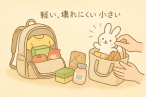 見た目はシンプルでも、丈夫な袋やエコバッグを使うと安心です。持ち手が切れないように、重いものは分散して入れましょう。