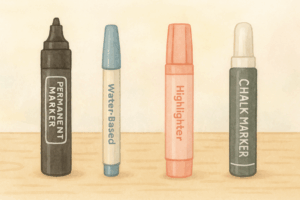 「100均やコンビニに行く時間もない!」そんな時は、あなたのデスクやペン立てにあるペンをチェックしてみましょう。実は、家や職場にある普通のペンの中にも、一時的にホワイトボードマーカーの代わりになるものが潜んでいる可能性があります。もちろん、すべてのペンが使えるわけではありませんが、インクの特性を理解すれば、緊急時に役立つ一本を見つけられます。ここでは、手持ちのペンの中から、代用品として使える可能性のあるペンの種類と、それぞれの使い分けのポイントを解説します。