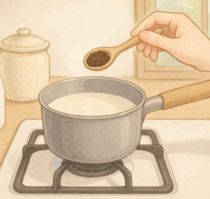 - 牛乳を温める: 小さめの鍋に牛乳を入れ、中火にかけます。