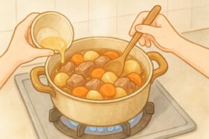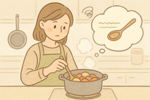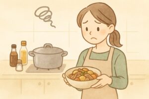 - 煮込み不足:十分に煮込まないと、具材に味が染み込む前に火が止まってしまいます。表面だけに味がついて中が薄い、ということになりがちです。弱火でじっくりと煮込む時間を取ることで、具材の中心まで味が行き渡り、全体のバランスが良くなります。焦げつきが気になる場合は、途中で火を止めて少し置くと、余熱で味が自然に入っていきます。