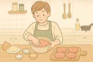 ここからは、実際に家庭で柔らかいハンバーグを作るための具体的なレシピと、調理前の大切な下ごしらえのコツをご紹介します。調理工程の中には、仕上がりの柔らかさを大きく左右する「タネの混ぜ方」や「成形」といった重要なステップがあります。これらのちょっとした工夫や注意点を守るだけで、あなたのハンバーグは劇的に進化します。さあ、一緒にふわふわハンバーグ作りに挑戦しましょう!