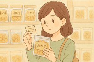 - 乾物・珍味コーナー: 乾燥タイプの油かす(カリカリとしたスナックに近い形状)は、おつまみや乾麺の近くに陳列されていることがあります。