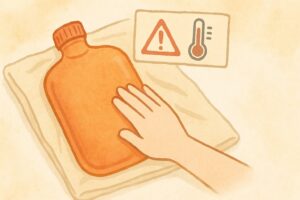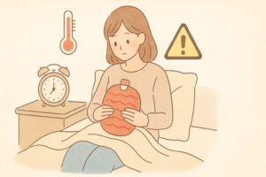 予防のためには、湯たんぽを使う際にカバーを二重にしたり、厚手の布で包んだりして使用し、就寝時は直接肌に触れないように布団の足元に置くのが安心です。
