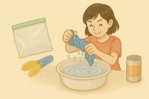 | 脱水(基本) | ねじらず、両手で優しく水分を「押し出す」 | 乾いたバスタオルで衣類を巻いてプレス(タオル巻き脱水) |