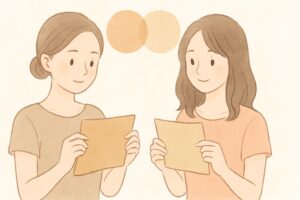 | 色合い | ニュートラル、赤み・黄み控えめ | 黄みがかった、標準的な肌色に近い |