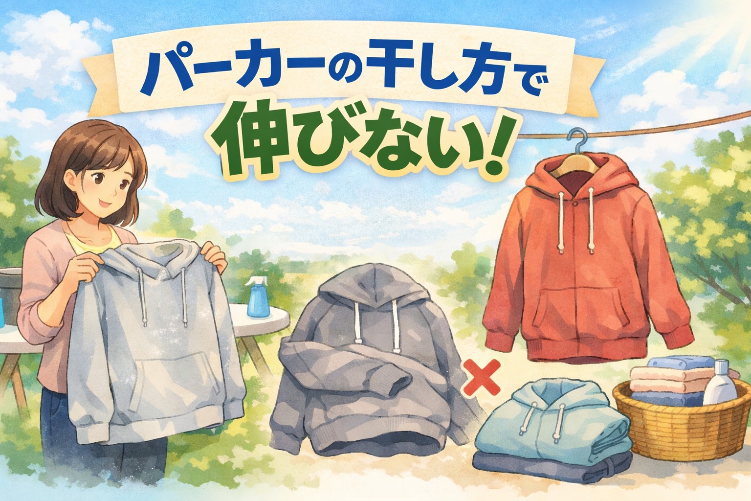 この記事では、だれでも無理なく取り入れられるように、丁寧にパーカーが伸びない干し方を基本から順番に解説していきます。