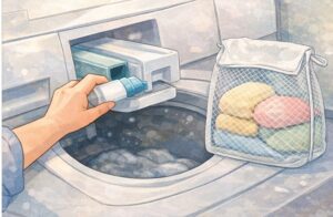 「摩擦が原因なら、摩擦を減らす」という考え方が基本になります。洗濯中の強い擦れは、毛羽落ちを増やす大きな要因になりやすいため、できるだけ負担を減らす工夫が大切です。