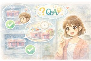 また、ケーキは表面積が広いため、家庭の冷凍庫では乾燥による風味の変化が起こりやすいのも特徴です。保存環境にもよりますが、できれば1週間〜2週間程度を目安に食べきると、トキメキと美味しさの両方を楽しみやすいでしょう。お祝いの余韻を楽しみつつ、風味が落ちる前に「お疲れさまのアイス」として味わいきってしまうのも素敵な楽しみ方です。