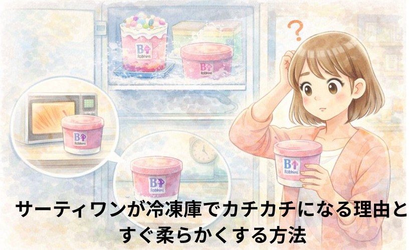 楽しみに持ち帰ったサーティワンのアイスクリーム。「いざ食べよう!」と思ったら、冷凍庫でカチカチに凍っていてスプーンが通らない…という経験はありませんか?せっかくの贅沢な時間ですから、できればお店のような絶妙な柔らかさで味わいたいですよね。