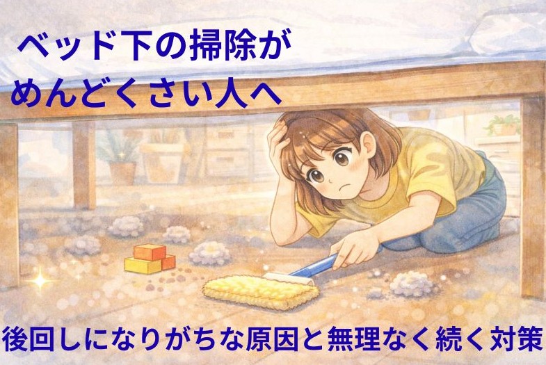 この記事では、ベッド下の掃除がめんどくさいと感じやすい理由から、無理なく続けられる掃除の工夫、そもそも汚れにくくする考え方までを、丁寧に分かりやすく解説します。