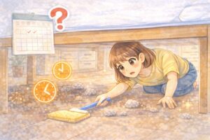 毎日忙しい方や、掃除にまとまった時間をかけられない方は、完璧を目指さず、気づいたときに軽く掃除するくらいでも十分です。無理に理想の頻度を守ろうとするよりも、「できる範囲で続けること」を意識したほうが、結果的にベッド下を清潔に保ちやすくなります。