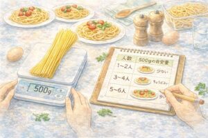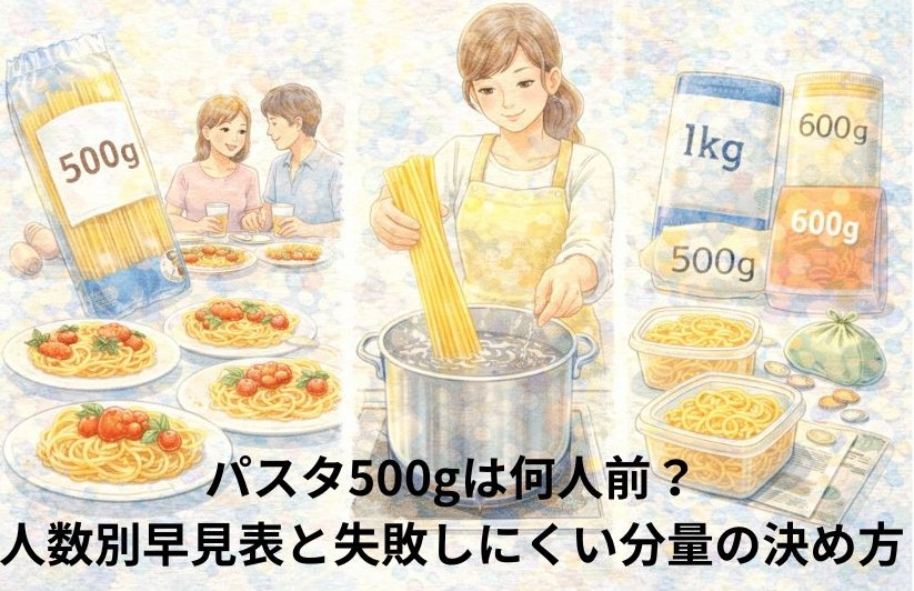 この記事では、パスタ500gの目安人数や、食べる人に合わせた調整方法を分かりやすく解説します。人数別の早見表や、失敗しにくい茹で方のコツもまとめました。