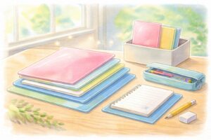 学年が上がり、教科ごとにノートを使い分けるようになると、「教科別に下敷きがあったほうが便利」と感じることもあります。たとえば、算数と国語でノートの種類や書き方が違う場合、下敷きを分けたほうが使いやすいと感じるお子さんもいるでしょう。ただし、これはあくまで一例であり、必ずしも全員に当てはまるわけではありません。