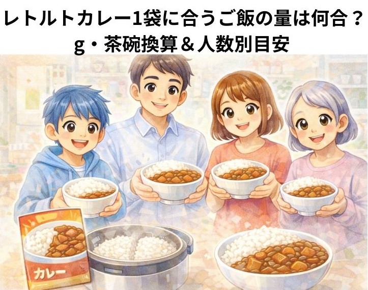 レトルトカレーを食べるとき、「ご飯は何合炊けばいいの?」「1袋に対して何gがちょうどいい?」「多すぎたり少なすぎたりしないかな?」と迷うことはありませんか。とくに初めて量を計算する場合は、gや合、茶碗の換算がわかりにくく感じることもありますよね。