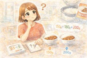 本記事の数値は一般的な目安です。炊き方や商品仕様、体調や食事全体の内容によって適量は異なりますので、参考情報としてご活用ください。実際の満足感を大切にしながら、ご自身に合った量を選んでいきましょう。