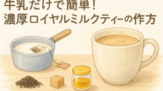料理 牛乳だけで簡単!濃厚ロイヤルミルクティーの作り方 ロイヤルミルクティーは、寒い季節だけでなく、一年中楽しめるリッチで贅沢なドリンクです。でも、「水の代わりに牛乳だけで作るのは難しそう」「煮出すと分離しそう」と、自宅での挑戦をためらっていませんか?この記事では、「牛乳だけ」を使い、誰でも失敗... 料理